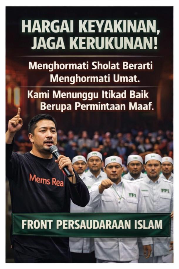 Dalam pernyataannya, Front Persaudaraan Islam menyampaikan bahwa materi komedi yang menyentuh ranah ibadah dan keyakinan umat berpotensi menimbulkan keresahan jika tidak disampaikan secara bijak. Oleh karena itu, klarifikasi melalui mekanisme hukum dinilai penting agar persoalan dapat diuji secara objektif, transparan, dan berkeadilan.